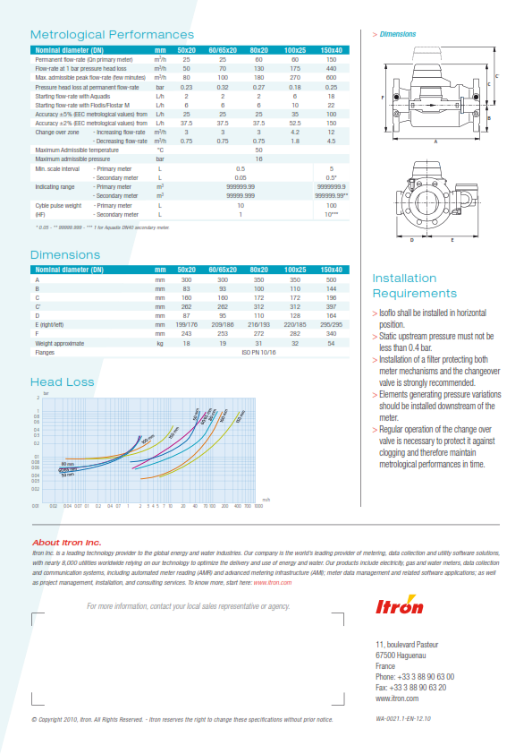 Hãng sản xuất: ITRON ACTARIS. Xuất xứ: CH Pháp -  Hiệu ISOFLO