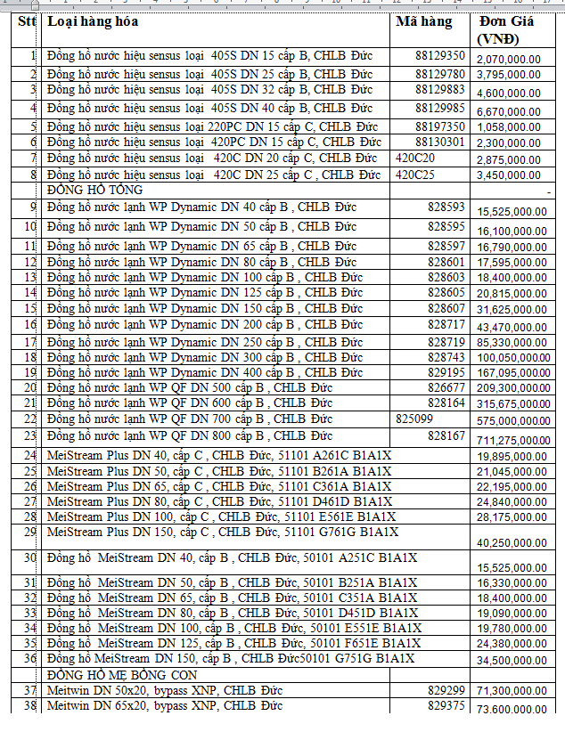 Bảng Giá Đồng hồ hiệu SenSus CHLB Đức: (CatalogueDN15-40) (CatalogueDN50-400)
