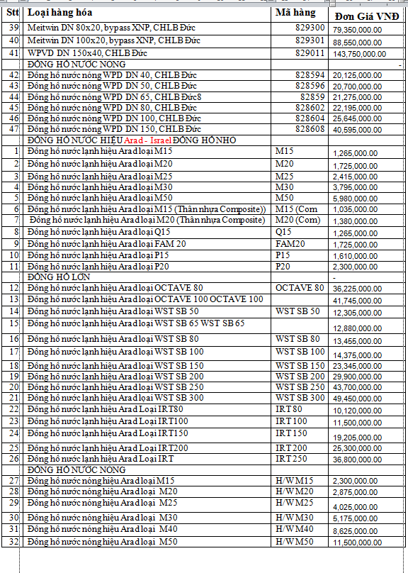 Bảng Giá Đồng Hồ Nước Nóng (CatalogueDN15-40) (CatalogueDN50-400)