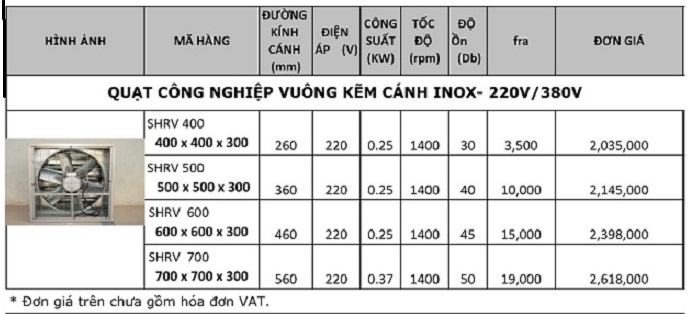 Quạt vuông công nghiệp Model: SHRV (700 x 700 x 300)mm