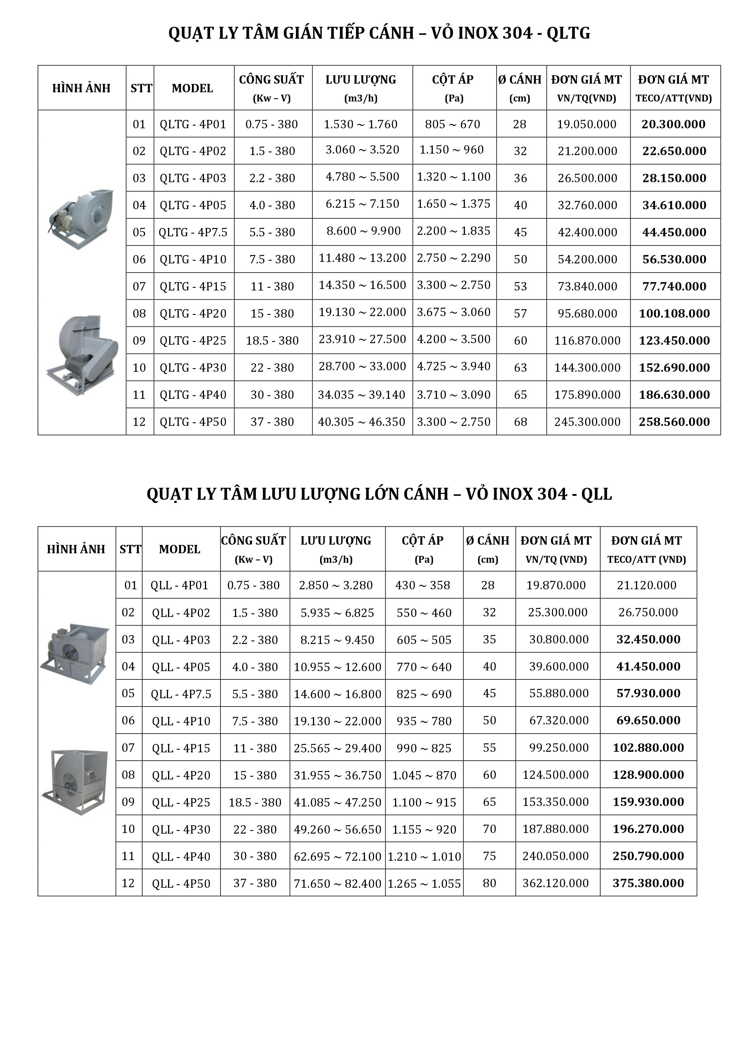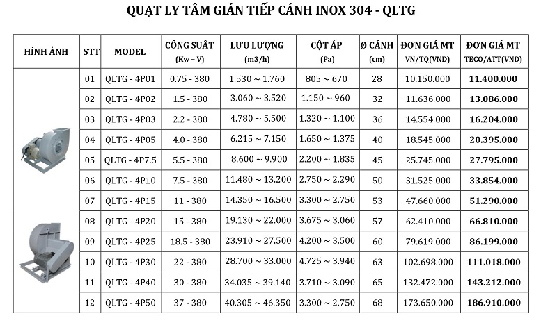 Các thông số kỹ thuật của Quạt ly tâm trung áp gián tiếp