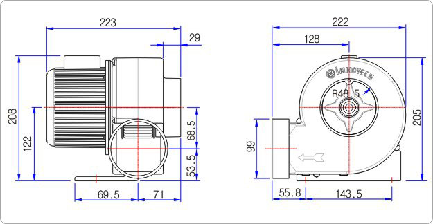 Quạt thổi cung cấp không khí áp suất cao, Vỏ bên ngoài được gia cố với độ bền cao (nhôm D / C)