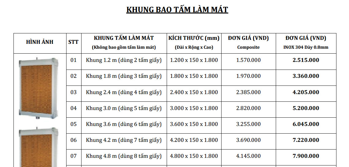 Thông tin chi tiết của sản phẩm Tấm làm mát
