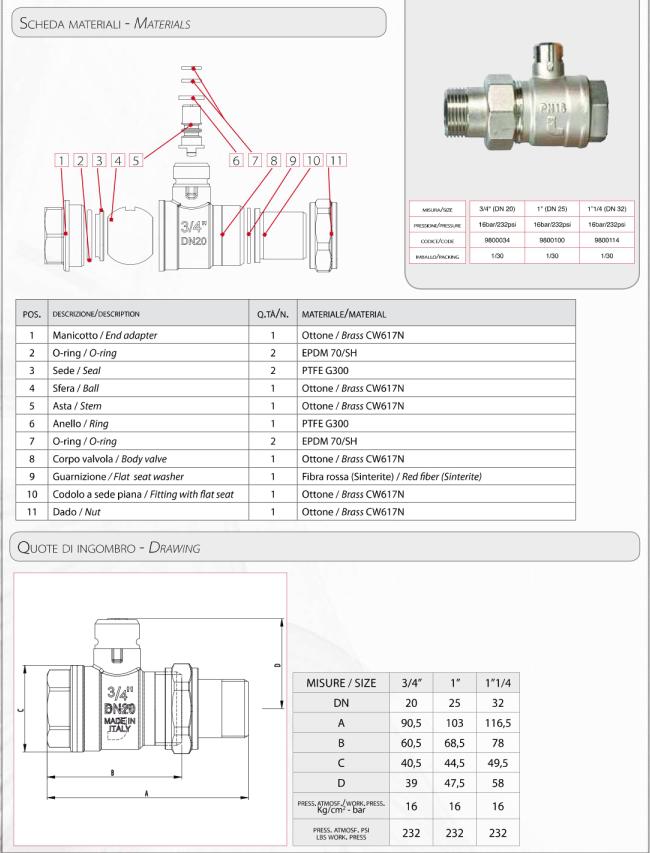 Mô tả : Van bi đồng ren điều khiển điện 220V, DN15 (1") MxF, Pmax=16Bar, CO_CQ: Italy