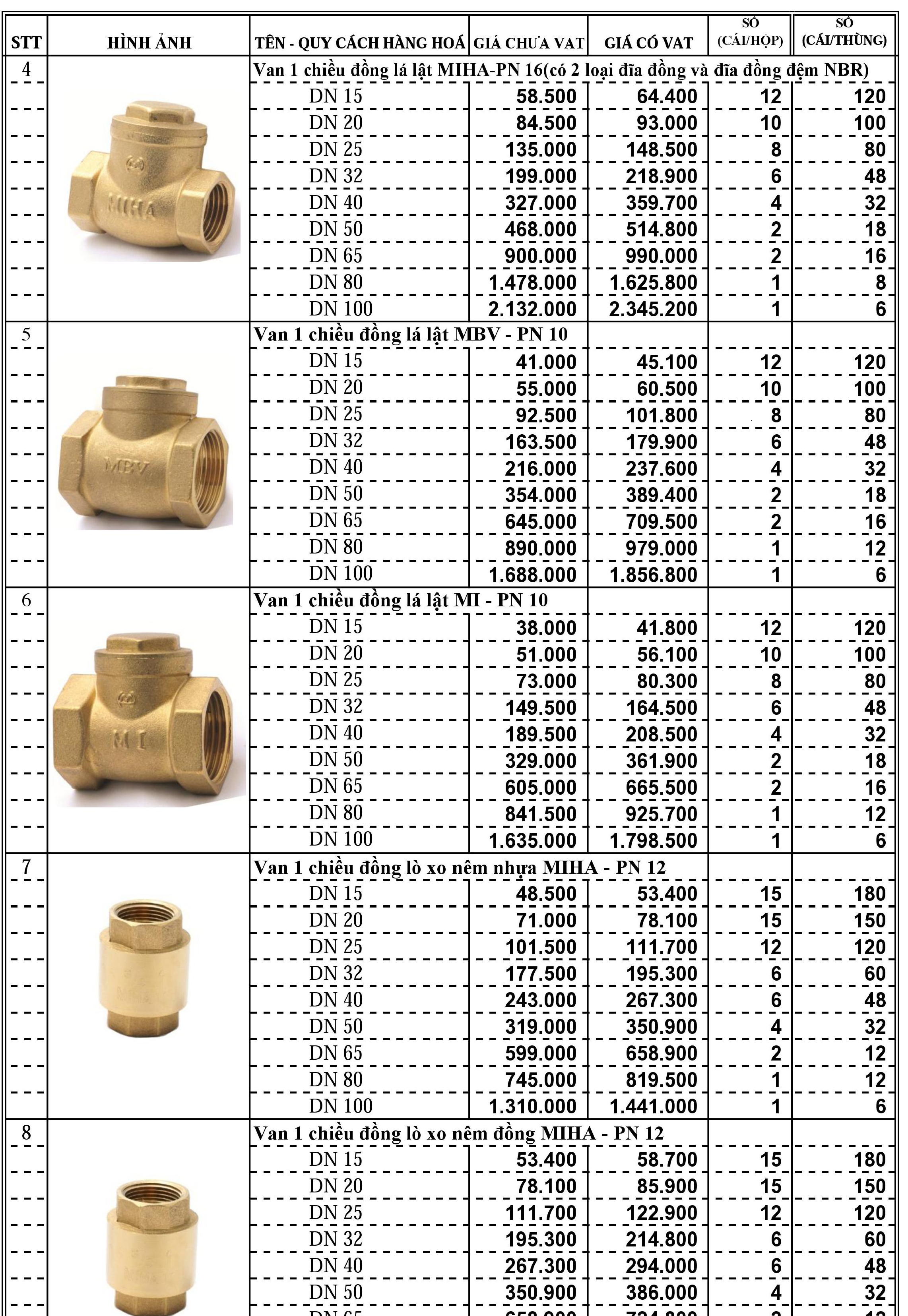 Van một chiều ren đồng, lá lật, nối ren.